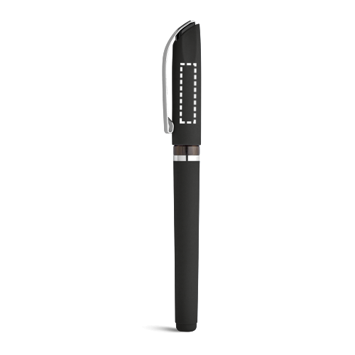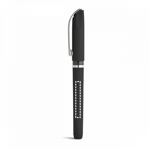 Kugelschreiber aus ABS mit schwarzschreibender Mine, Kappe, Metallclip und gummierter Oberfläche. Inklusive Gel-Nachfüllung. ø12 x 140 mm